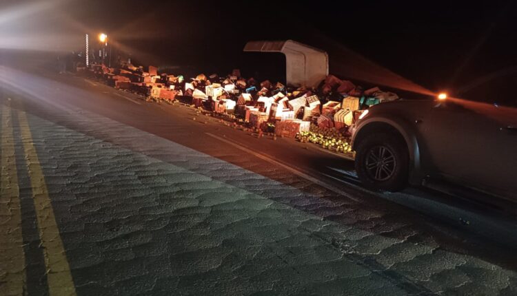 As causas do tombamento não foram detalhadas no boletim preliminar. A via foi sinalizada e o trânsito no trecho ficou parcialmente interrompido para atendimento da ocorrência e remoção do caminhão.