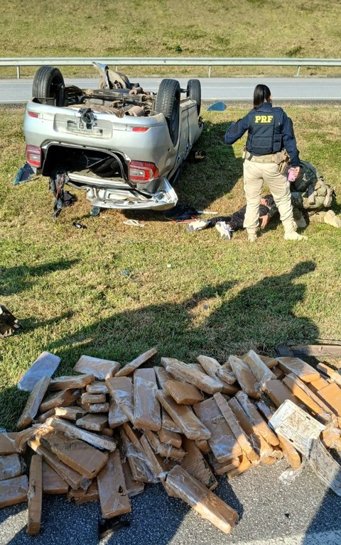 O motorista não obedeceu ordem de parada na BR-101 em Itapema e fugiu em alta velocidade sentido sul por cerca de 60 km, até bater em uma carreta e capotar o automóvel no Contorno da Grande Florianópolis. Parte da carga de tabletes de maconha, que estava no porta-malas do Renault/Logan, ficou espalhada pela rodovia.