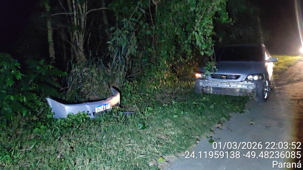 Sengés – Carro saiu da pista e colidiu contra um barranco na noite deste domingo (1º), na PR-151, em Sengés. O acidente ocorreu por volta das 20h30, no km 177+800 metros, no trecho entre Sengés e Jaguariaíva, e não deixou vítimas.
