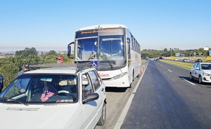 Carambeí – Acidente de trânsito foi registrado na manhã desta segunda-feira (21) na PR-151, em Carambeí. A colisão traseira aconteceu por volta das 7 horas, no km 307 da rodovia, e envolveu dois veículos: Fiat Uno e ônibus Volvo Comil.