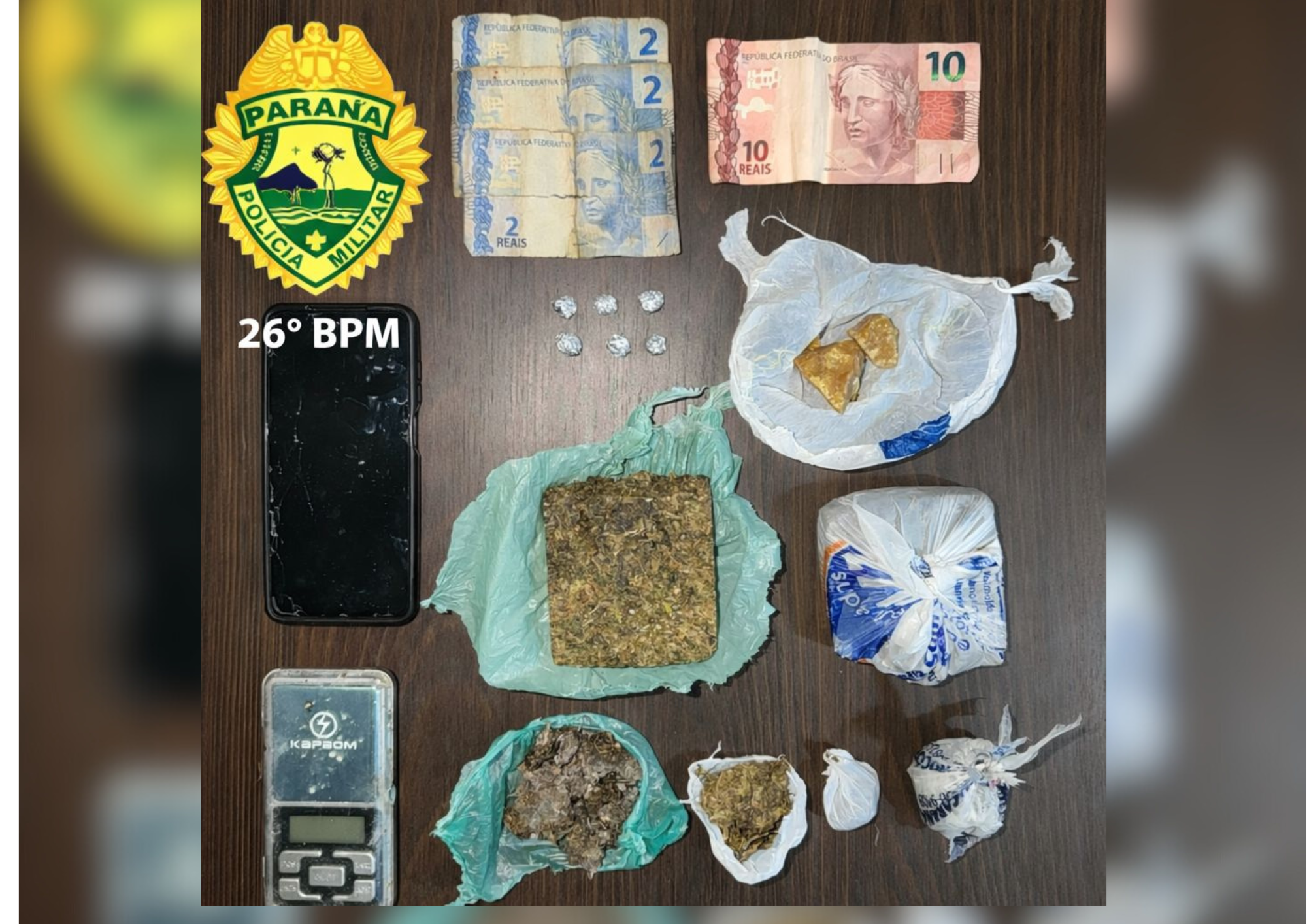 A mulher informou ainda que havia mais entorpecentes em sua residência e autorizou a equipe a realizar buscas no imóvel. No endereço indicado, os policiais encontraram porções de maconha e crack, além de uma balança de precisão e outros materiais relacionados ao tráfico.