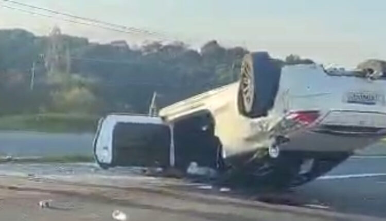 Capotamento próximo ao km 292 da PR-151, mobilizou grande efetivo de socorro no início da tarde desta quarta-feira (7), em Castro.