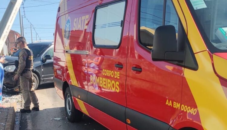 Acidente de trânsito foi registrado na tarde desta sexta-feira (25), por volta das 15h15, na Avenida Dácio Leonel de Quadros, em Castro. Mulher de 49 anos sofreu ferimentos moderados após o veículo em que estava, um GM Captiva, colidir em poste de baixa e alta tensão.