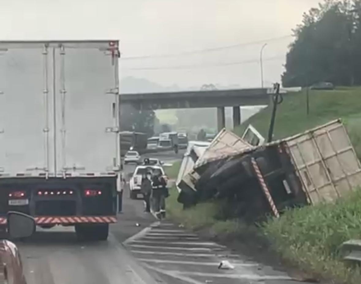 Imagens que circulam em grupos de WhatsApp mostram a dinâmica do acidente, um caminhão tombou no canteiro central da rodovia, enquanto uma carreta bi-trem tombou às margens da pista no sentido Curitiba. Equipes da Polícia Rodoviária Federal (PRF) e do Departamento de Estradas de Rodagem do Paraná (DER-PR) atendem a ocorrência.