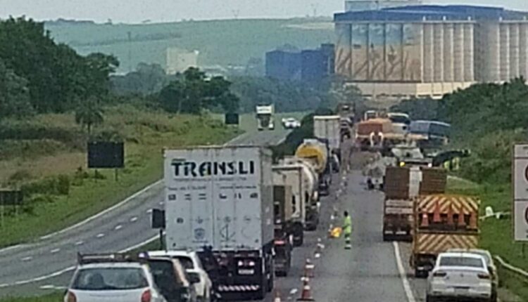 Segundo informações repassadas pela Polícia Rodoviária Estadual, os trabalhos de manutenção na rodovia reduziram a passagem para apenas uma faixa, obrigando o tráfego a seguir de forma alternada. A situação se agravou com a necessidade de retirada de um caminhão que havia apresentado problemas mecânicos no local.