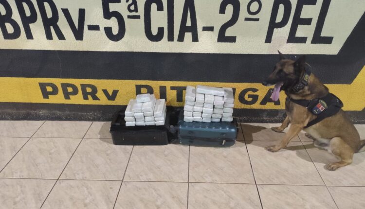 Pitanga – Na noite desta terça-feira (1º), por volta das 21h35, a Polícia Rodoviária Estadual e a Polícia Militar, em operação com cães, realizaram apreensão de drogas na PRC-466, no km 177, no município de Pitanga. Durante a abordagem a um ônibus da empresa Brasil Sul, que fazia o itinerário de Umuarama (PR) a Florianópolis (SC), o cão farejador Maximus indicou positivamente a presença de entorpecentes no bagageiro do veículo.