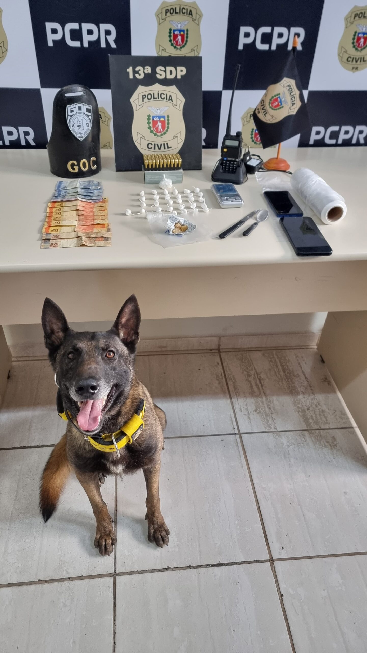 A ação foi coordenada pelo Setor Operacional da 13ª Subdivisão Policial (SDP), que cumpriu três mandados de busca e apreensão. Em uma das residências, o cão de faro Bolt, do GOC, localizou diversas buchas de cocaína já embaladas, além de uma porção maior da droga que ainda seria fracionada. No mesmo imóvel, os agentes encontraram uma caixa com 50 munições calibre 9mm.