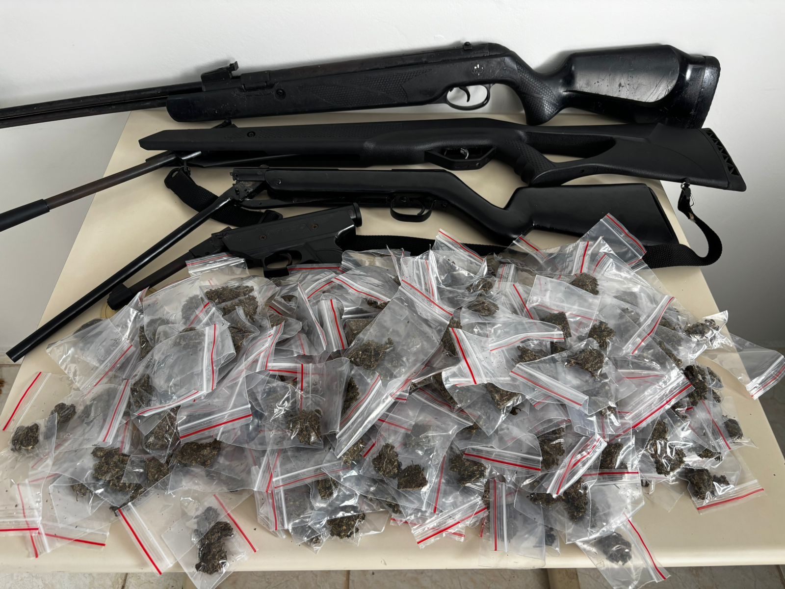 As equipes apreenderam 6,970 quilos de maconha, 269 gramas de cocaína, 36 pedras de crack, além de cinco armas, 37 munições de calibre .38, oito balanças de precisão, uma motocicleta e R$ 7.336,00 em espécie. Também foram encontrados diversos objetos provenientes de furtos ocorridos recentemente na cidade.