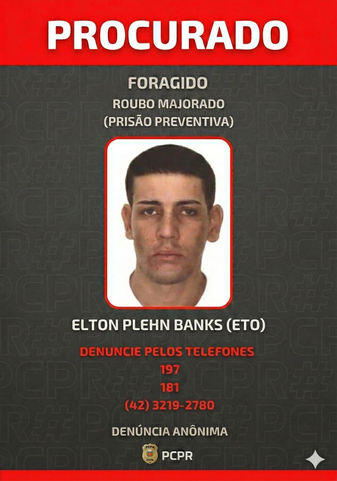 A Polícia Civil informou que mantém diligências contínuas para capturar os foragidos e reforçou a importância da colaboração da população. Informações podem ser repassadas de forma anônima pelos canais 197 (PCPR), 181 (Disque-Denúncia) e pelo telefone (42) 3219-2780, diretamente na unidade policial.