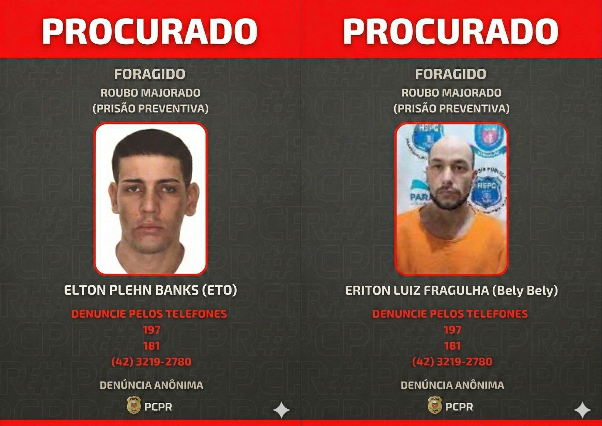 A Polícia Civil informou que mantém diligências contínuas para capturar os foragidos e reforçou a importância da colaboração da população. Informações podem ser repassadas de forma anônima pelos canais 197 (PCPR), 181 (Disque-Denúncia) e pelo telefone (42) 3219-2780, diretamente na unidade policial.