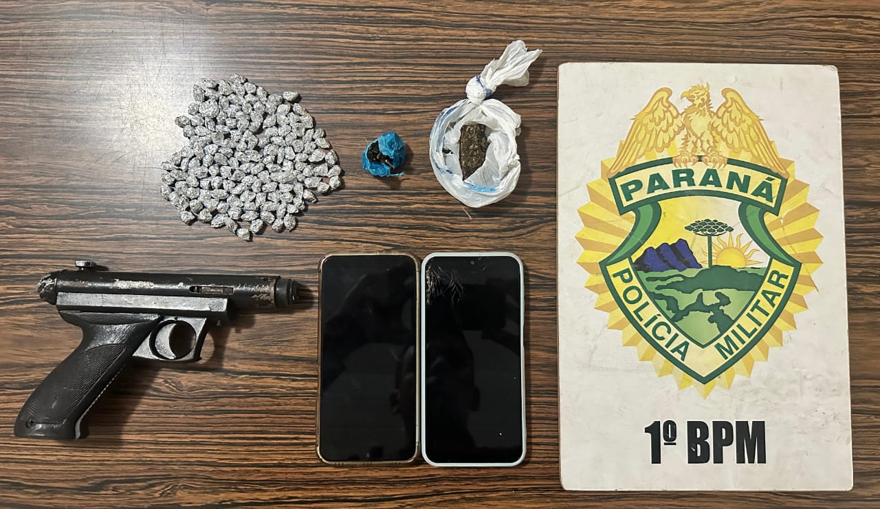 Carambeí – Policiais Militares da Ronda Ostensiva (RPA) apreenderam 161 pedras de crack, um simulacro de arma de fogo e dois celulares durante uma ação realizada na Rua Basalto, em Carambeí, nesta segunda-feira (6). A ocorrência aconteceu enquanto os agentes cumpriam uma ordem de serviço de rotina no município.