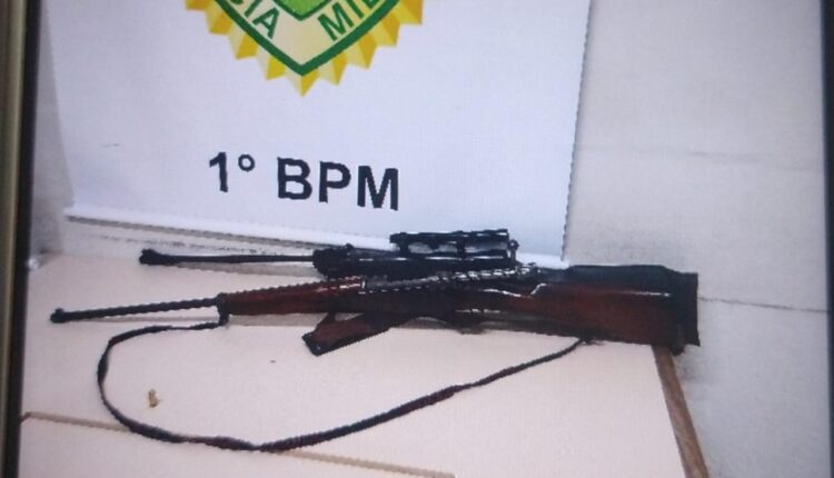 Diante da denúncia, os policiais realizaram buscas no imóvel e no terreno, onde localizaram duas espingardas, uma calibre 36 e outro calibre 22, além de uma munição de calibre 9mm.