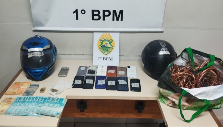 Na ocorrência foram apreendidos aparelhos celulares, maconha, fios de cobre, dois capacetes e a motocicleta furtada. Todos os envolvidos foram encaminhados às autoridades competentes para as providências legais cabíveis.
