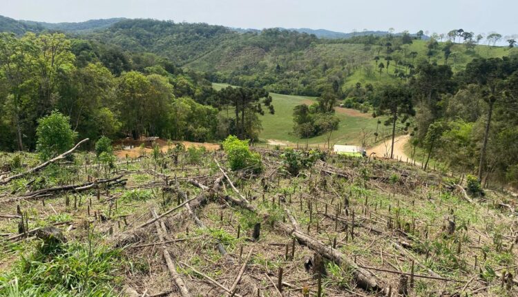 O responsável pela propriedade não possuía autorização ambiental para o corte raso de árvores nativas, o que resultou em multa de R$ 56 mil.