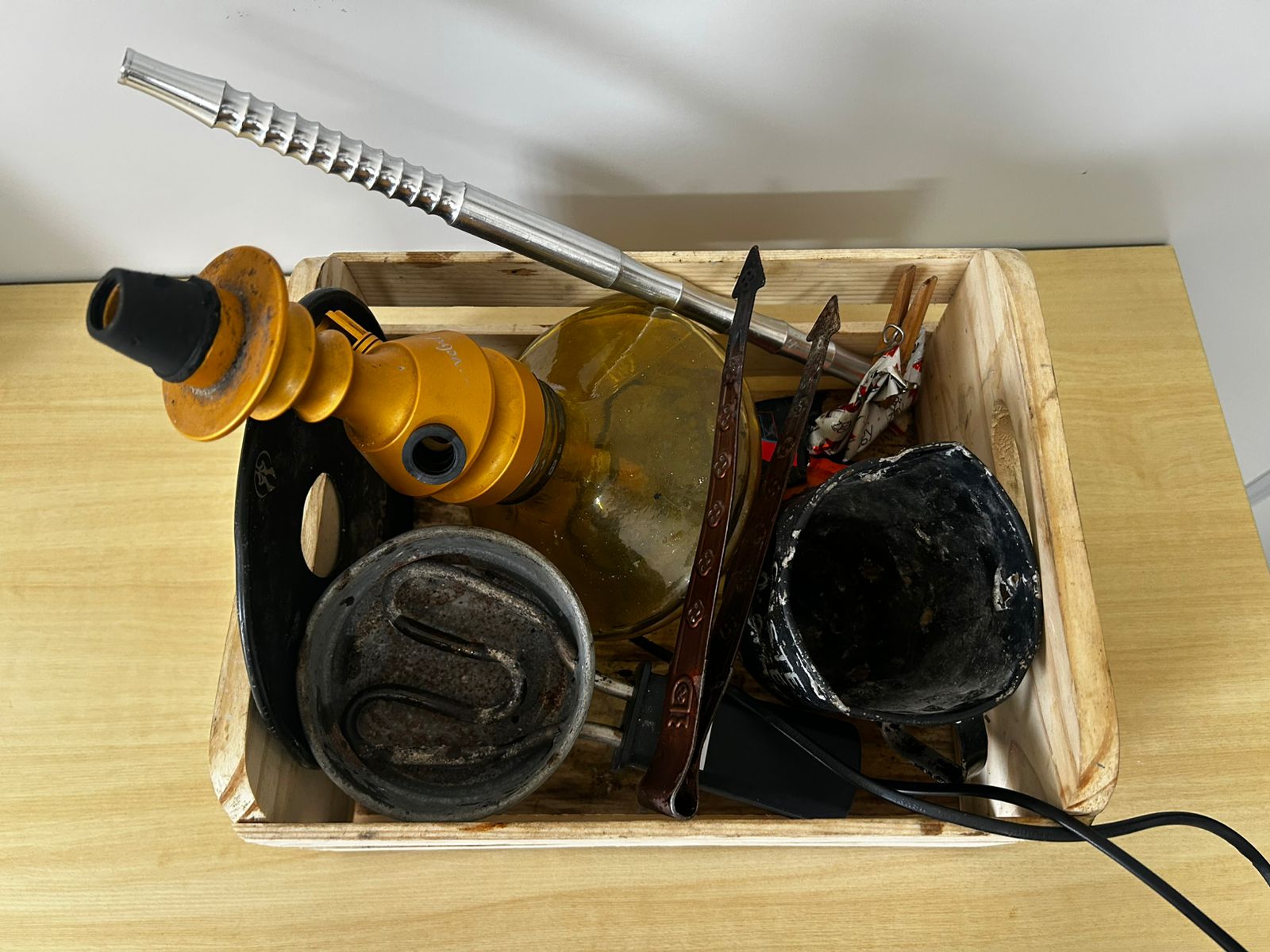 Durante o cumprimento do mandado, os agentes localizaram em um dos cômodos da residência o narguilé que aparece nas imagens. Os genitores foram intimados a comparecer na unidade policial para prestar depoimento e responder pelo crime de fornecimento de substância que cause dependência física ou psíquica a criança ou adolescente, previsto no artigo 243 do Estatuto da Criança e do Adolescente.
