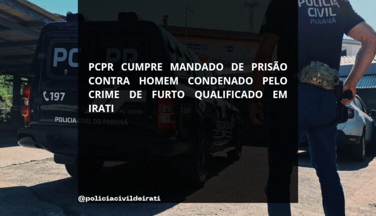 Irati – Nesta quinta-feira (11), a Polícia Civil, por meio da 41ª Delegacia Regional de Polícia Civil de Irati, cumpriu mandado de prisão contra um homem de 34 anos, condenado por crime de furto qualificado. O indivíduo foi preso no bairro Vila Nova, em Irati, após não cumprir as medidas alternativas à prisão, impostas judicialmente durante a execução de sua pena.