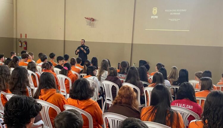 Palmeira – Na última semana, a Polícia Civil do Paraná realizou uma palestra educativa para cerca de 100 alunos do Colégio Realiza, no centro de Palmeira. A ação, conduzida pelo delegado Rodrigo Siqueira, titular da 40ª Delegacia Regional de Polícia, teve como foco o combate à criminalidade e a conscientização dos jovens sobre temas sensíveis e atuais.