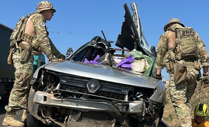 O acompanhamento se estendeu por cerca de 3 quilômetros, com o condutor realizando manobras perigosas, transitando pelo acostamento e até mesmo na contramão da rodovia, colocando em risco a segurança de outros motoristas. Nas proximidades do km 472, o fugitivo perdeu o controle do veículo, colidiu com um barranco e capotou.