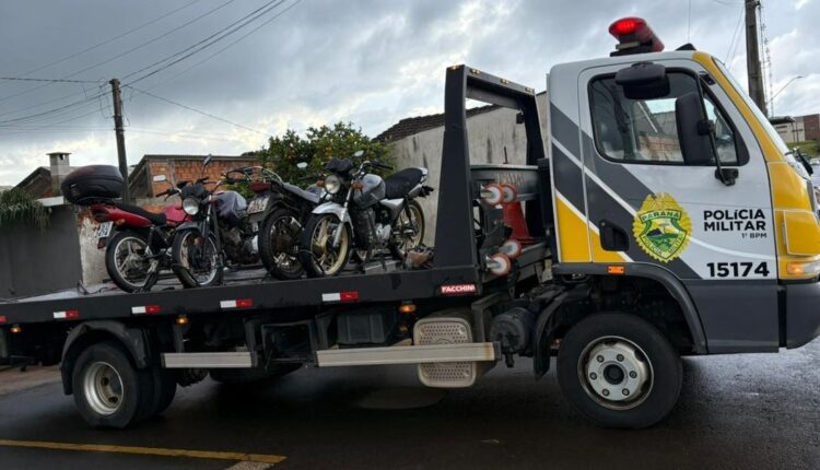 Ponta Grossa — Ação da Polícia Militar resultou na apreensão de várias motocicletas com sinais de adulteração em uma oficina mecânica localizada na Rua Raul Ferreira Messias, no bairro Neves, em Ponta Grossa. O caso foi registrado na tarde deste sábado (7), por volta das 14h30, como adulteração de sinal identificador de veículo automotor.