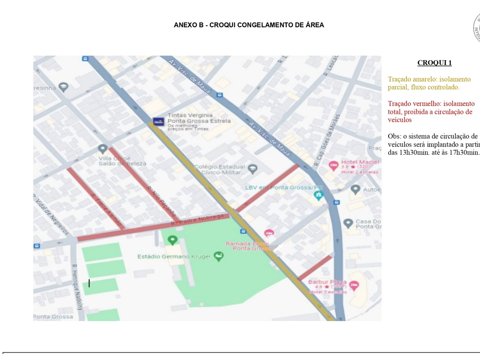 Ponta Grossa – A Polícia Militar (PM) informou que houve alteração nos horários de bloqueio de vias em razão do jogo entre Operário Ferroviário EC e Londrina EC, marcado para este sábado (15), às 16 horas. As mudanças visam garantir a segurança e fluidez do trânsito, especialmente nas proximidades do estádio e nas vias de acesso.