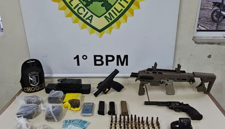 Durante a abordagem, o suspeito foi flagrado portando ilegalmente uma pistola Glock 9mm. Na sequência, as buscas no quarto da pousada resultaram na apreensão de mais armamentos, incluindo outra pistola 9mm, um revólver e um kit Roni — acessório usado para transformar pistolas em submetralhadoras. Também foram encontradas diversas munições e uma quantidade significativa de drogas: mais de dois quilos de maconha e aproximadamente 400 gramas de crack.