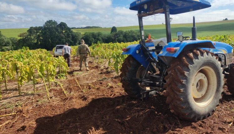 Após alguns quilômetros, o veículo entrou em uma propriedade rural. O condutor perdeu o controle da direção e o carro ficou imobilizado em meio a uma área de plantação, momento em que foi abordado pela equipe.