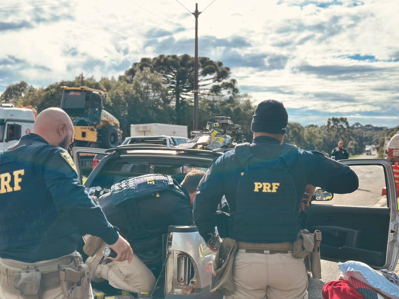 Segundo a PRF, ao aprofundar a inspeção, foram identificados indícios de adulteração no carro, especialmente nas lanternas traseiras e no banco traseiro. Em seguida, os agentes localizaram compartimentos ocultos onde estavam escondidos diversos aparelhos celulares.