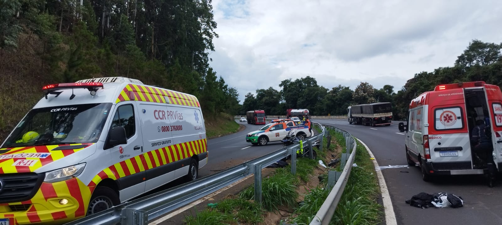 Acidente ocorreu em curva no km 432 da rodovia e mobilizou ambulância da concessionária e helicóptero do SAMU