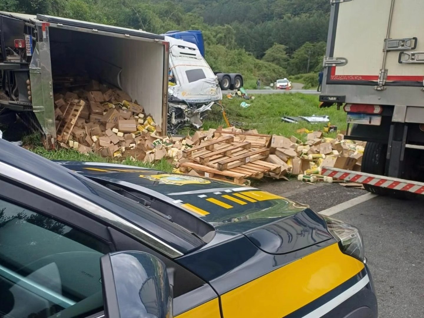 De acordo com relato do motorista do caminhão, o veículo — que transportava queijos — seguia no sentido São Paulo quando foi interceptado por criminosos, após ser bloqueado por outro caminhão. Ele contou que duas pessoas armadas o renderam e realizaram o retorno, passando a trafegar no sentido Curitiba.