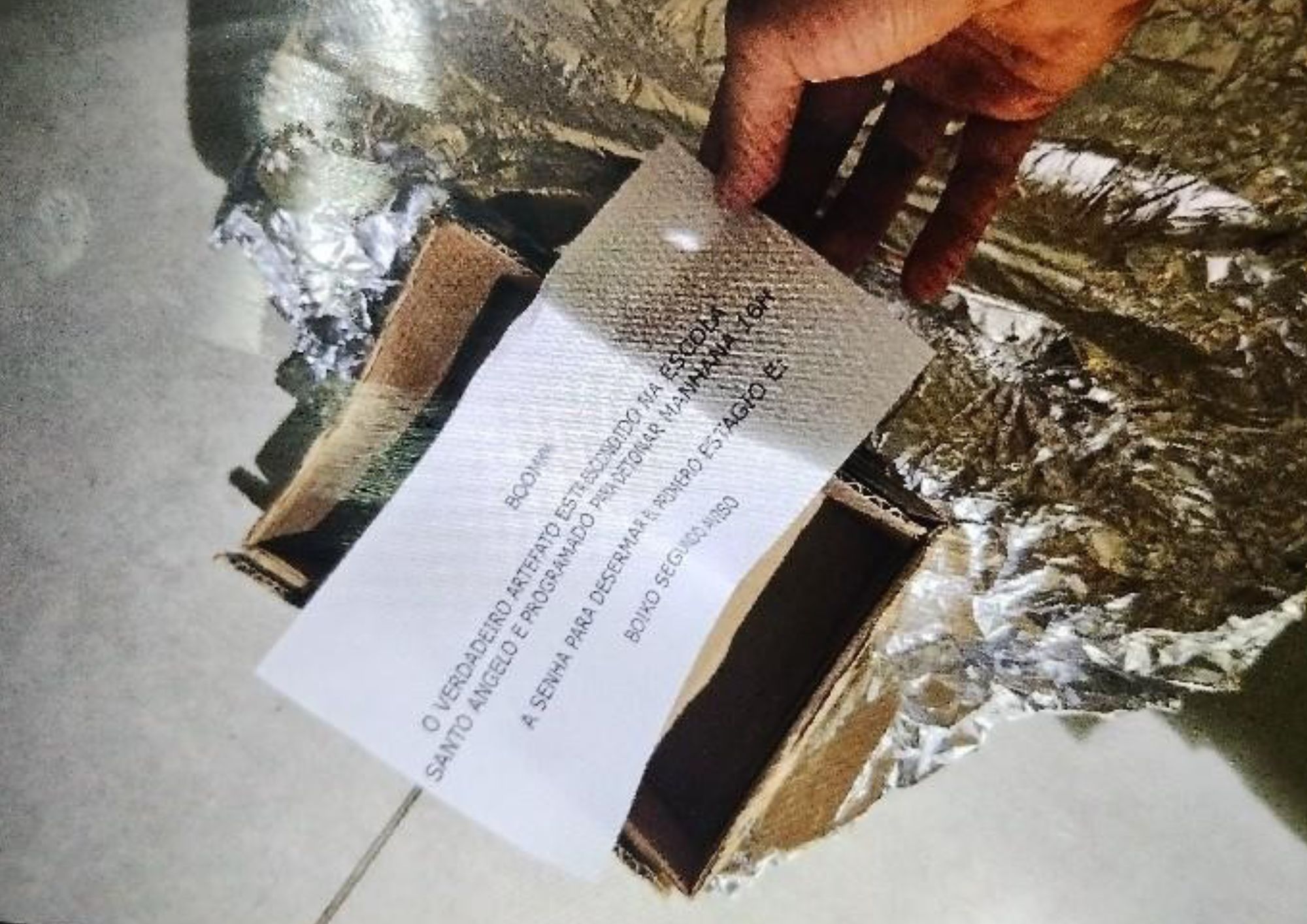 Dentro do objeto, havia uma carta com teor ameaçador. No bilhete, o autor afirmava que “o verdadeiro artefato” estaria escondido em uma escola e que uma suposta detonação ocorreria no dia seguinte, às 16 horas, mencionando ainda uma senha para desativação. O conteúdo foi interpretado pelas autoridades como parte da estratégia criminosa para gerar pânico e pressionar as vítimas.