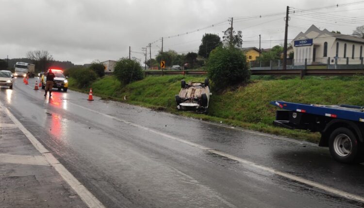 Carambeí – A tarde chuvosa de sexta-feira (20), em Carambeí, teve reflexos na PR-151, com capotamento de automóvel na chamada Curva da Morte.