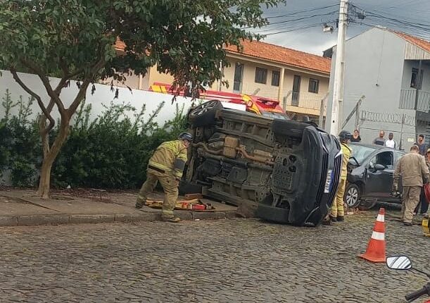 Ponta Grossa – Acidente de trânsito envolvendo dois veículos terminou com o tombamento de um SUV da General Motors, no início da tarde desta quarta-feira (16), no bairro Uvaranas. A colisão aconteceu por volta das 14h50, no cruzamento das ruas Capistrano de Abreu e Carlos de Carvalho, uma região de grande fluxo de veículos.
