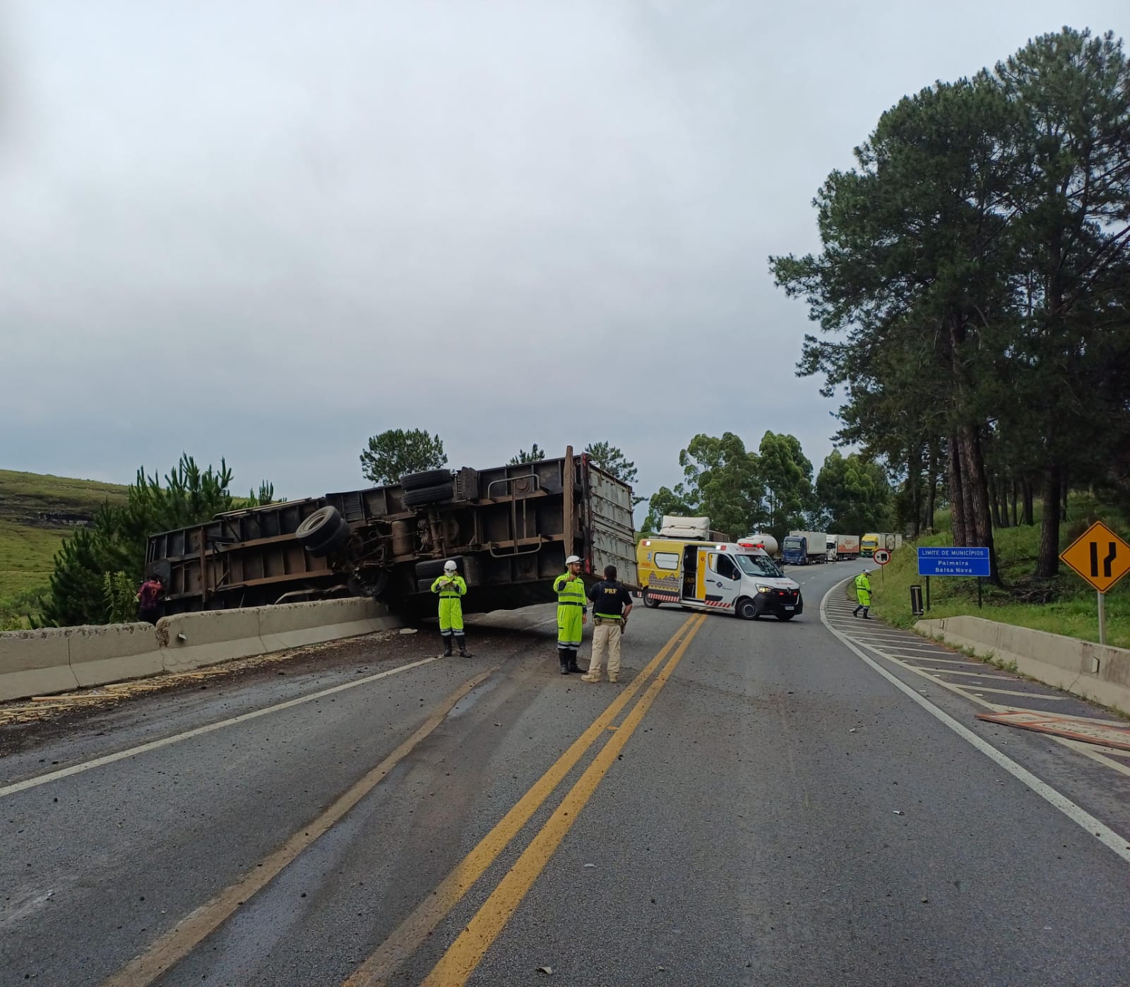 Tombamento de caminhão interdita totalmente a BR-277 na divisa entre Palmeira e Balsa Nova