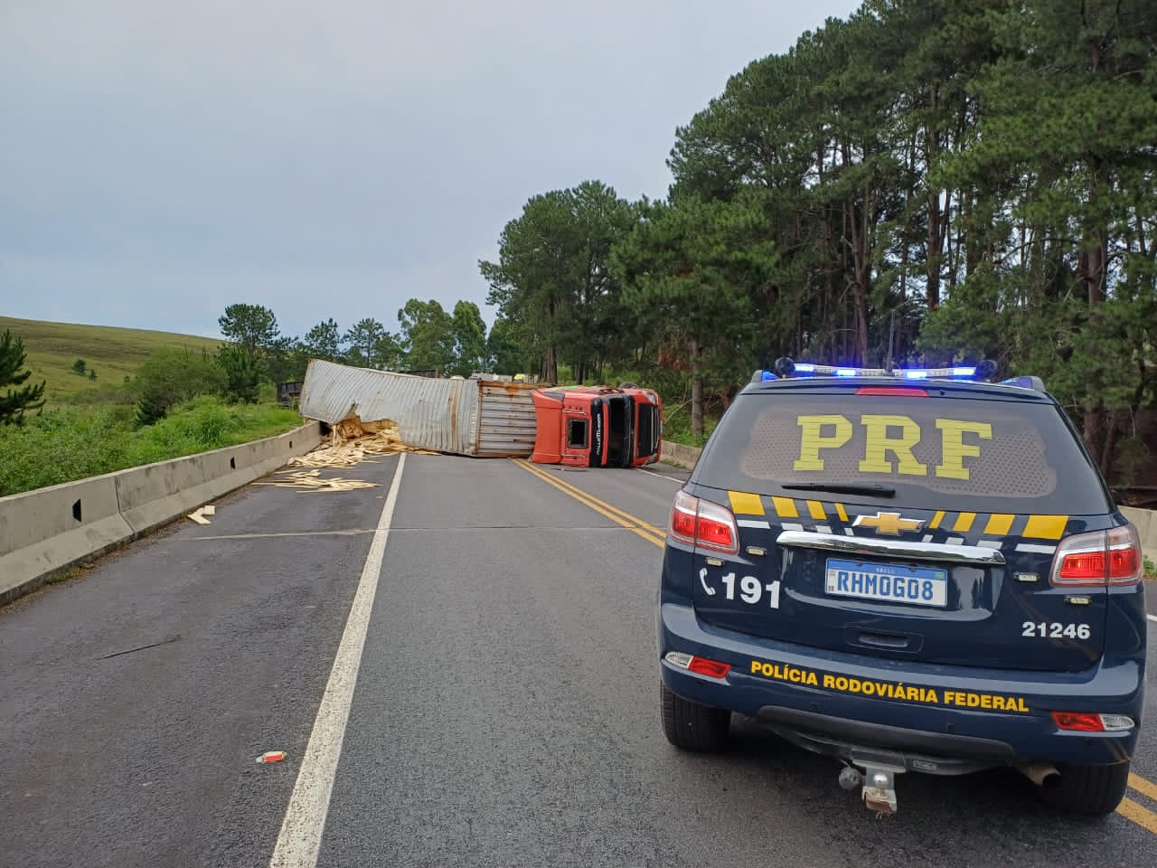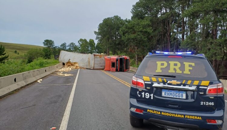 Tombamento de caminhão interdita totalmente a BR-277 na divisa entre Palmeira e Balsa Nova