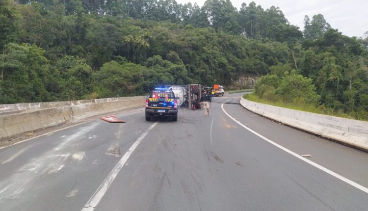 Tráfego segue lento no sentido Ponta Grossa da BR-376 após tombamento de caminhão bitrem