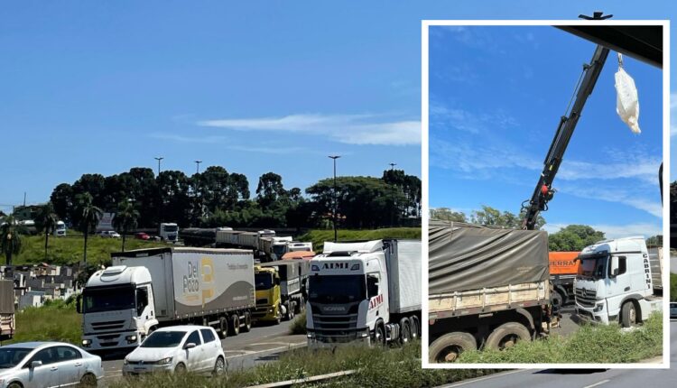 Transbordo de carga causa congestionamento na BR-376 em Ponta Grossa