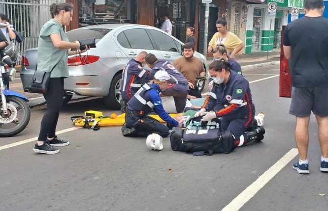 Ponta Grossa – Atropelamento ocorreu na rua Balduíno Taques, região central de Ponta Grossa, no início da tarde desta sexta-feira (29). O acidente ocorreu próximo à Sanepar e envolveu um veículo Fiat Punto, além de três pedestres, resultando em ferimentos neles.