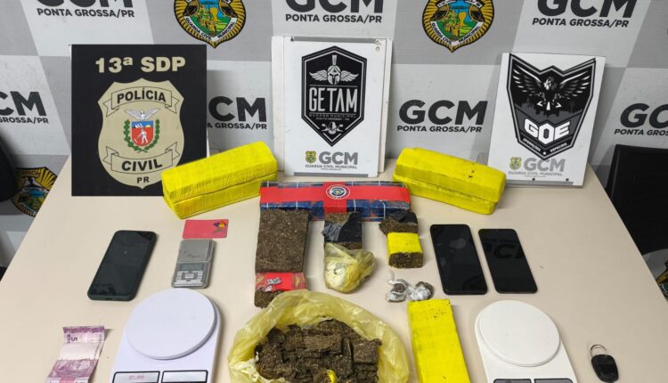Três traficantes são presos e cinco quilos de maconha são apreendidos em ação integrada da Polícia Civil e Guarda Municipal de Ponta Grossa
