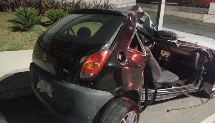 Ponta Grossa – Carro ficou completamente destruído ao atingir um poste em Ponta Grossa, na madrugada desta sexta-feira (26). Apesar do impacto e do estado em que ficou o GM Celta, o motorista não se feriu. Uma passageira foi levada por conta própria para atendimento médico e seu estado de saúde não foi informado.