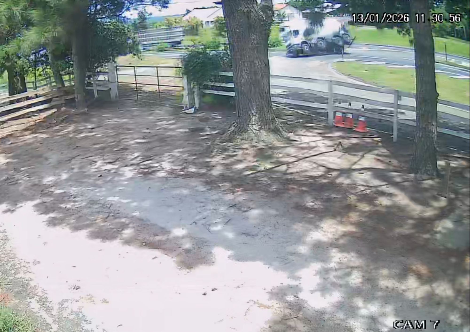 Carambeí – Um caminhão tombou na manhã desta terça-feira (13) na PR-151, no trecho entre Ponta Grossa e Carambeí, e o momento do acidente foi registrado por uma câmera de monitoramento instalada em uma propriedade às margens da rodovia. As imagens mostram o instante em que o veículo inicia a conversão em um retorno, perde a estabilidade e tomba sobre a pista no sentido Ponta Grossa–Carambeí, por pouco não sendo atingido por um caminhão-tanque que trafegava pela via.