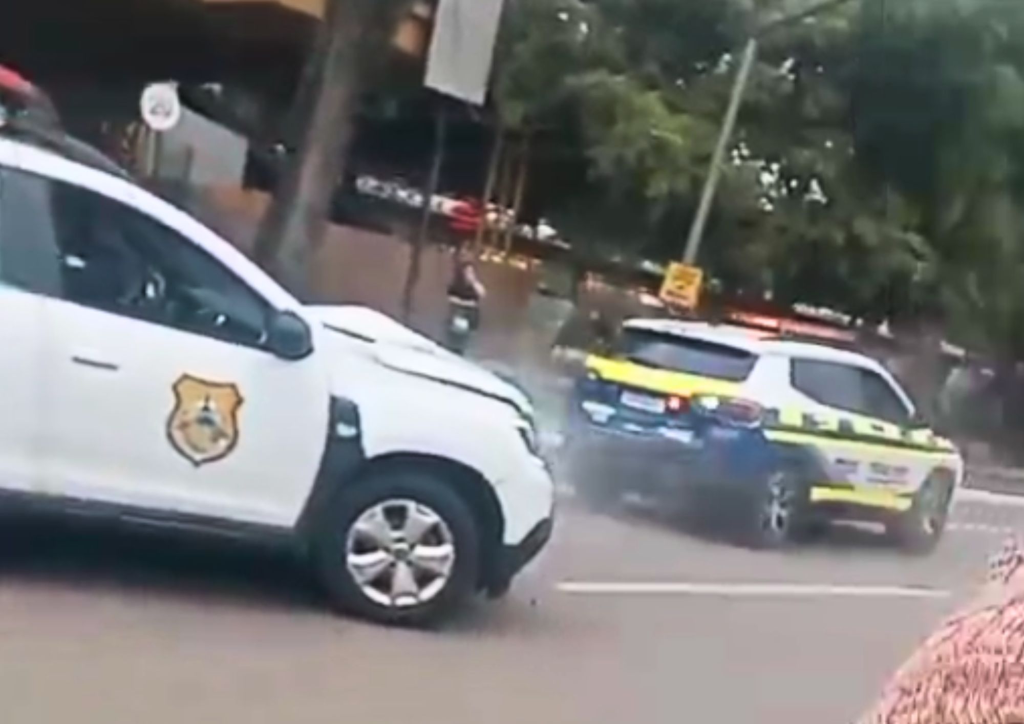 VÍDEO – Colisão entre viaturas de segurança é registrada em frente ao Terminal Central de Ponta Grossa