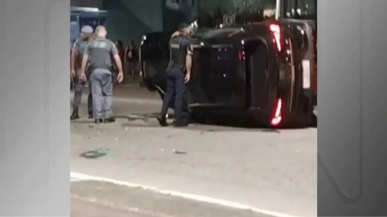 Imagens de câmeras de segurança mostraram seu carro em fuga, em alta velocidade, até capotar entre dois ônibus ao tentar entrar em uma avenida.