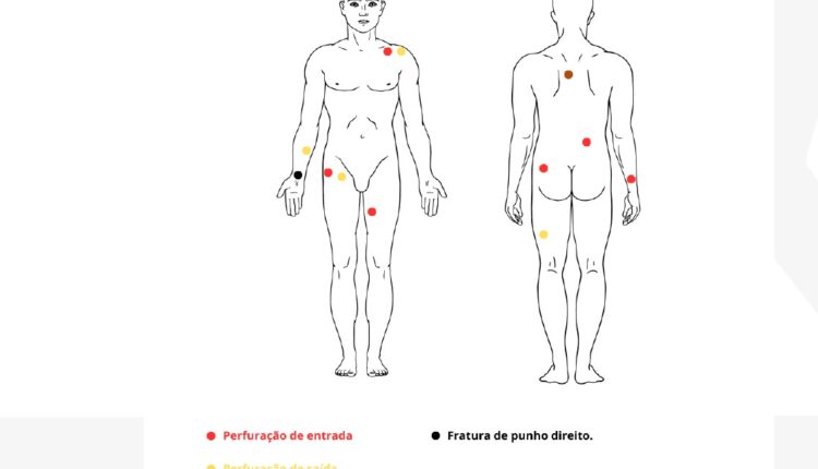 De acordo com o perito, a necropsia realizada pelo Instituto Médico-Legal (IML) constatou seis perfurações de entrada, quatro de saída e um projétil alojado na região dorsal. “Guilherme de Quadros Becher veio a falecer por choque hipovolêmico hemorrágico devido às lesões causadas pelos projéteis de arma de fogo”, registrou o documento.