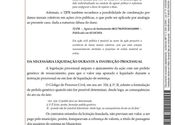 Na ação, a Procuradoria sustenta que os prejuízos não se limitam ao valor citado no acordo penal. O Município pede que sejam analisados documentos e livros contábeis da empresa responsável pelo transporte coletivo à época dos fatos, com realização de perícia para calcular o tamanho do eventual dano material.