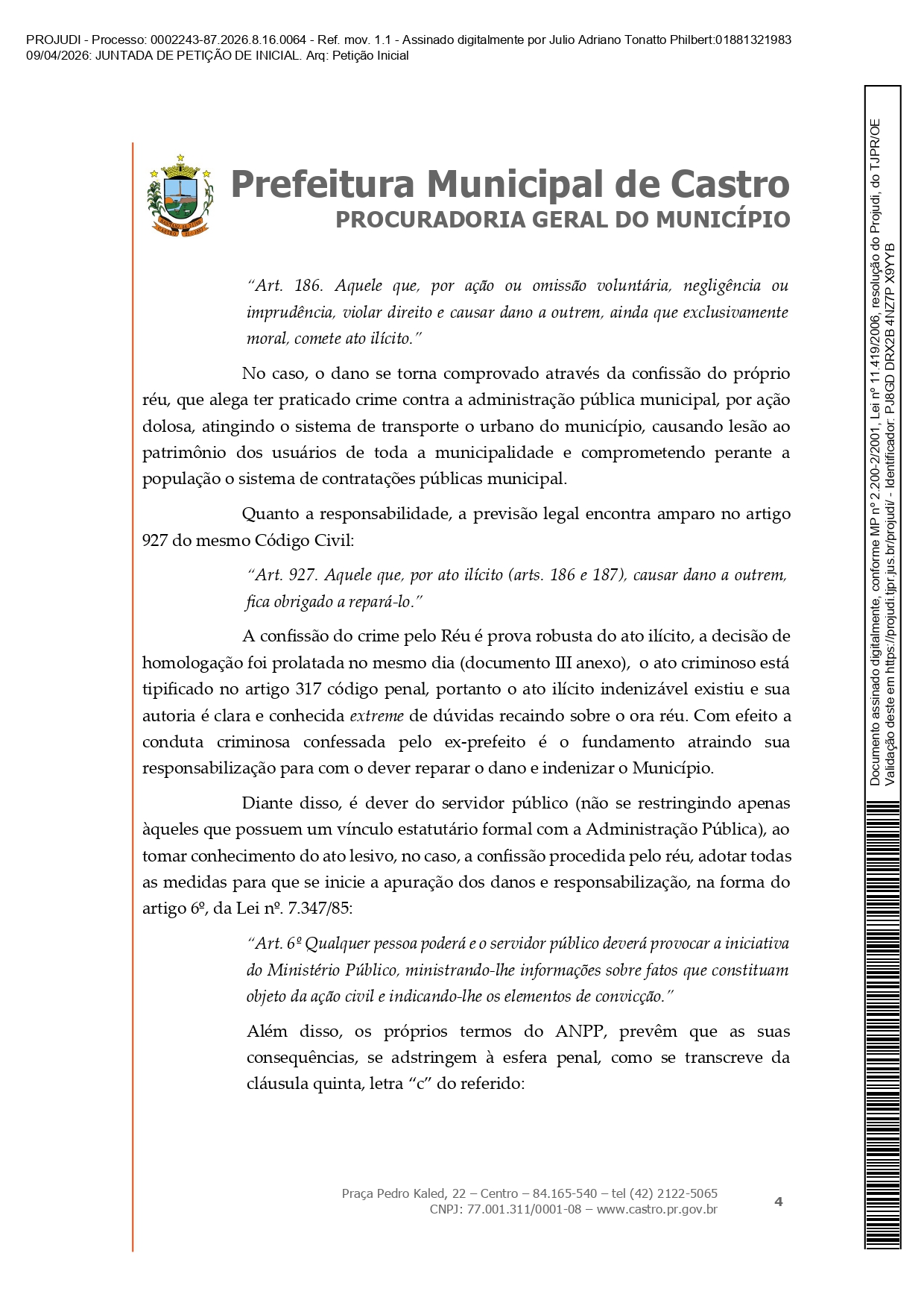 • Procuradoria Geral do Município de Castro move ação contra Moacyr Fadel e pede indenização de R$ 1 milhão