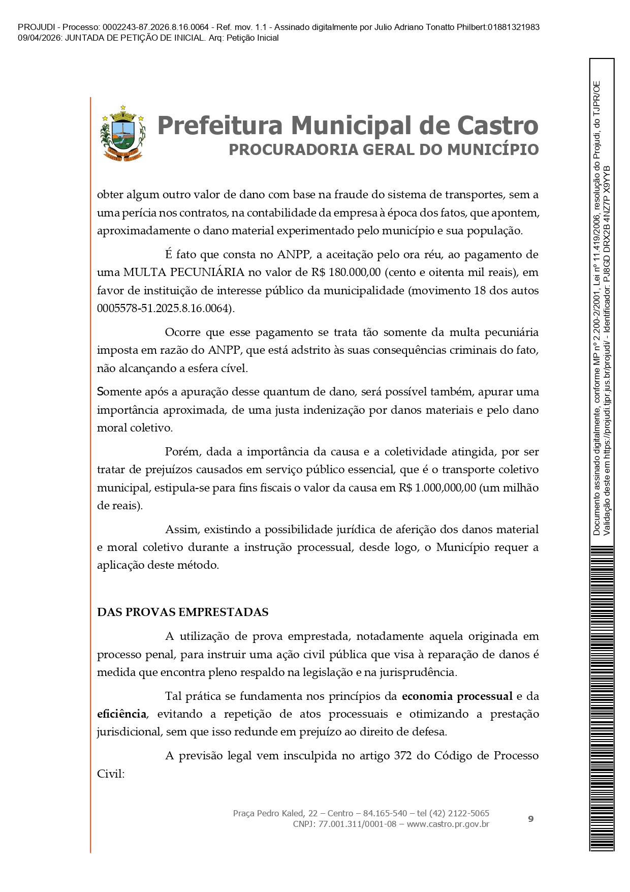 Voltar para "Procuradoria Geral do Município de Castro move ação contra Moacyr Fadel e pede indenização de R$ 1…" ACAOINDENIZATORIAANPP_page-0009 Próximo Anterior