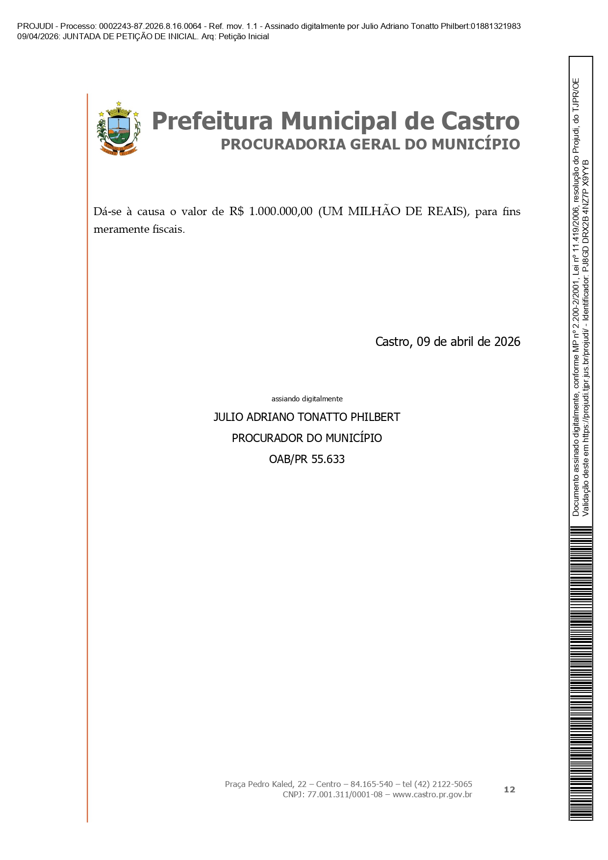 Voltar para "Procuradoria Geral do Município de Castro move ação contra Moacyr Fadel e pede indenização de R$ 1…" ACAOINDENIZATORIAANPP_page-0012 Anterior
