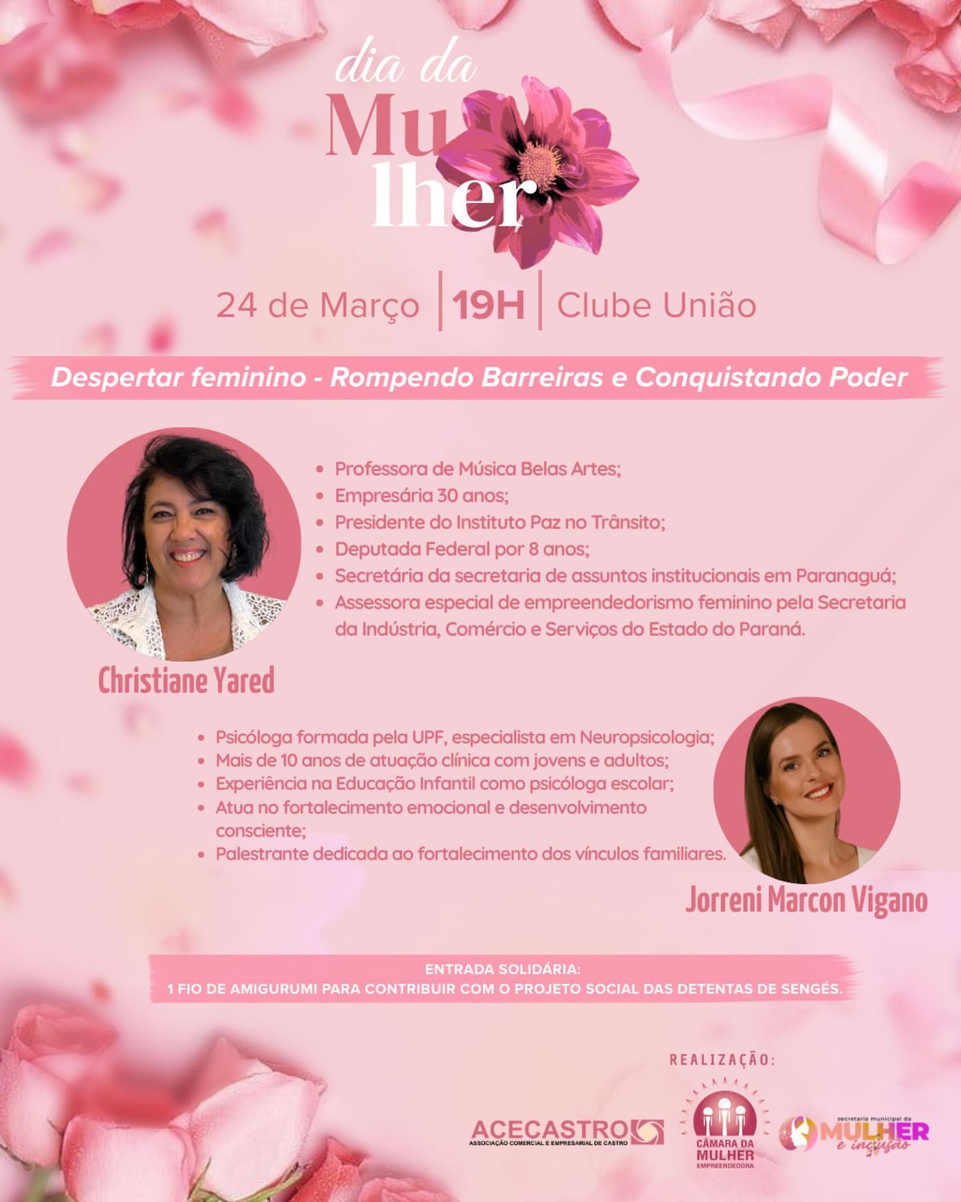Castro/Carambeí – A programação do “Março com Elas” segue movimentando a região dos Campos Gerais com ações voltadas à valorização e ao protagonismo feminino. Entre os destaques está a palestra sobre empreendedorismo feminino com a assessora da Secretaria de Estado da Indústria, Comércio e Serviços do Paraná, Christiane Yared, que cumpre agenda em dois municípios da região.