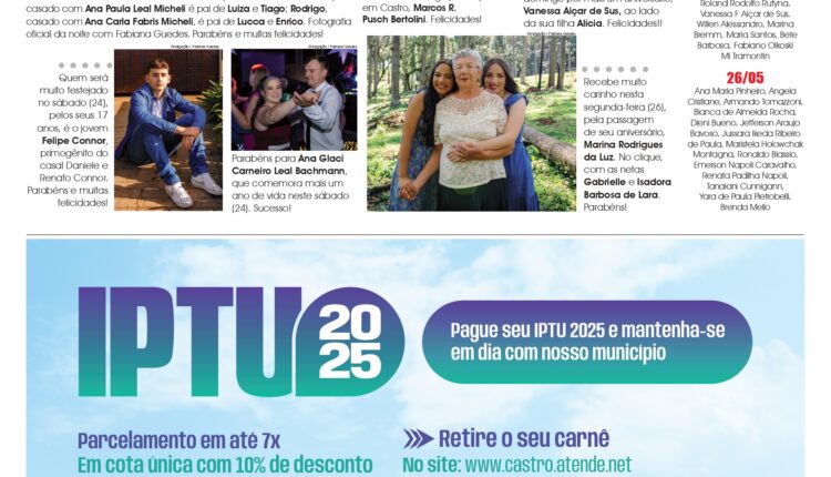 Coluna Social D+ 23/05 Social By Redação Página 1 On 22 maio, 2025 0 39 Share Participe da comunidade no WhatsApp do PáginaUm News e receba as principais notícias dos campos gerais direto na palma da sua mão. ENTRE NA COMUNIDADE. 0 39 Share